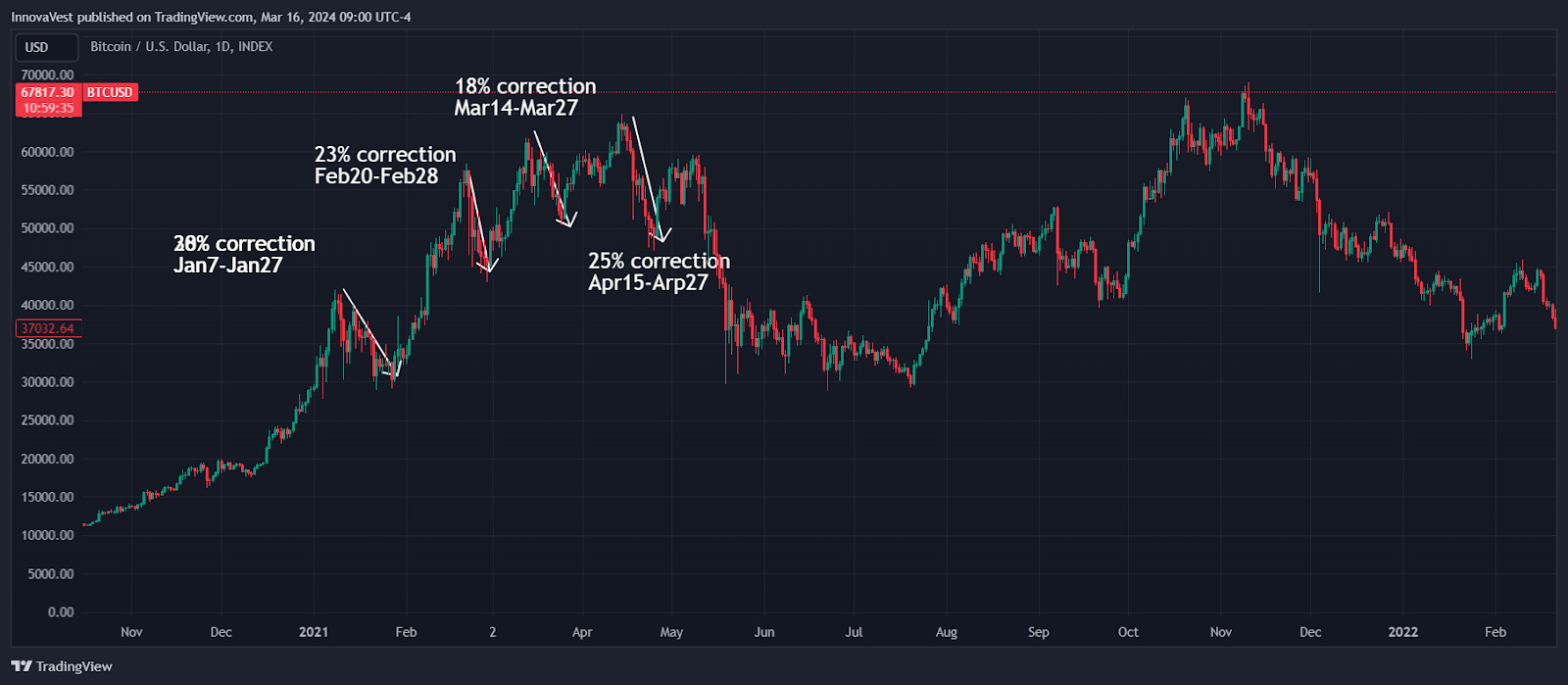 It has been a volatile week for crypto as BTC both touched ATH above $73,000 and experienced a ~10% correction on Friday, dropping below $67,000.