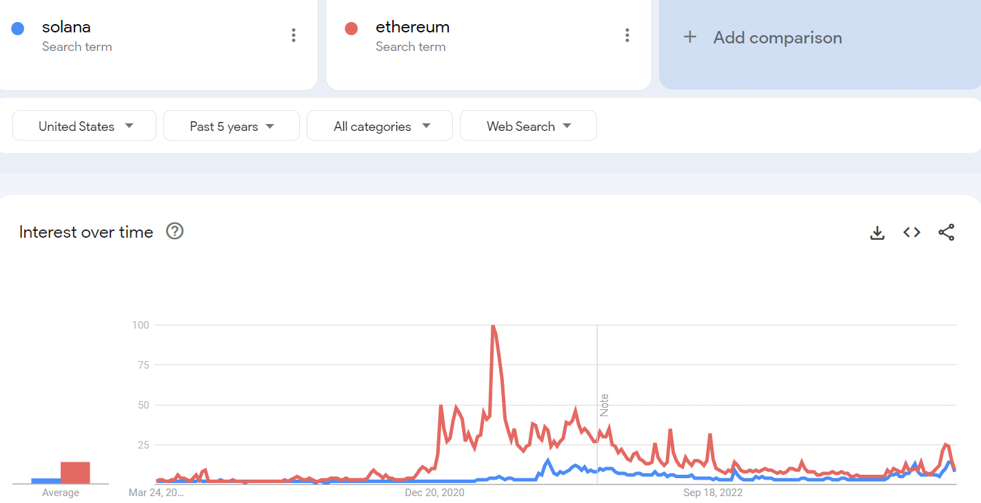On the cautious side, we should be concerned about the rapid rise of meme coins and potential fraudulent fundraising activities in Solana. Solana’s founder Anatoly has publicly pleaded with the community to stop memecoin pre-sale activities. Solana’s high performance has become a double-edge sword in attracting both real users and speculators into the ecosystem. Memes have provided good PR for Solana, as its Google search trend has reached an all-time high compared to its past search history. However, it has yet to reach the level seen by ETH during the last bull cycle. The Solana ecosystem might be memed, but we have reasons to be hopeful, as more leading Solana dApps are expected to do airdrops this year, including Tensor- the leading NFT market place, MarginFi - the leading borrowing and lending protocol and Drift - the leading derivative protocol, just to name a few.