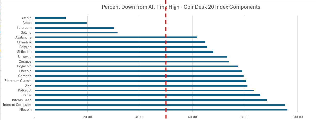 Despite BTC finally reaching a new ATH after more than a year since the FTX debacle, other large digital assets still have some way to go before hitting their previous ATHs. Reviewing the components of the CoinDesk 20 Index, a benchmark for large cap digital assets, 16 of them are still down more than 50% from their last ATH price. This indicates we might still have some time to go before the AltSeason fully kicks in.