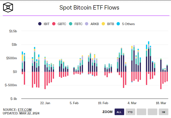 We have experienced the first week of spot ETF outflow since January, likely due to the negative price action last week. We are not particularly concerned about it as the sales effort to institutional clients have just started.